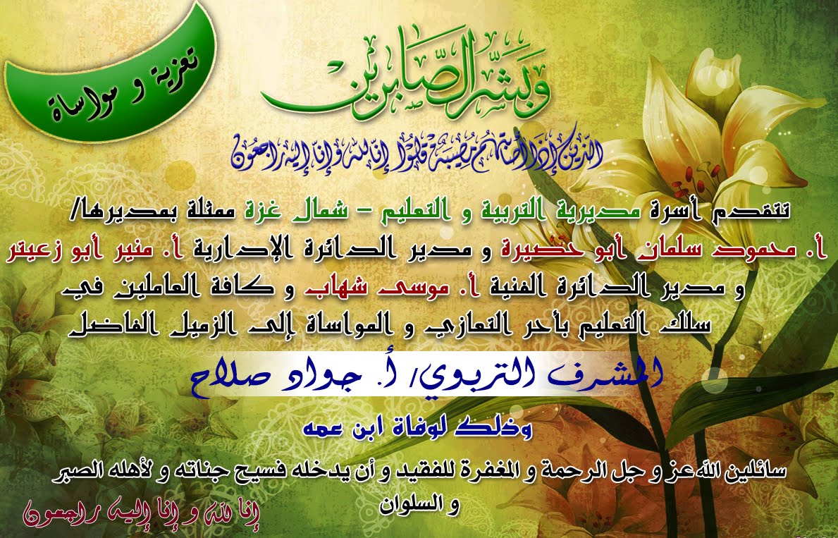 "تعزية و مواساة إلى المشرف الفاضل "أ. جواد صلاح"