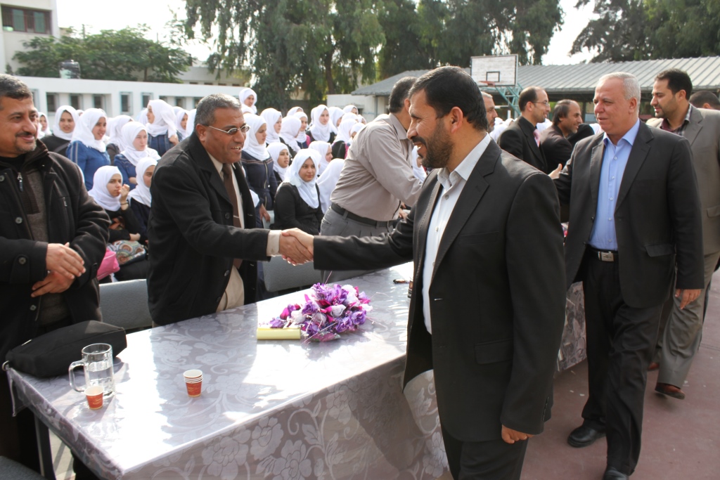 إلى ذلك، توجه د. ثابت و أ. أبو حصيرة والوفد المرافق معهما إلى مدرسة هاني نعيم الثانوية الزراعية حيث وقف على آخر الإنجازات والمشاريع والإنشاءات التي تم تجهيزها مؤخراً، حيث استمع الوفد إلى شرح مفصل من مدير المدرسة م. محمود الزعانين حول الظروف التي تمر بها المدرسة وطبيعة المشاريع المزمع تنفيذها خلال المرحلة المقبلة.