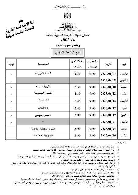 برامج امتحانات شهادة الدراسة الثانوية العامة الفردية للعام 2023م + رابط التحميل